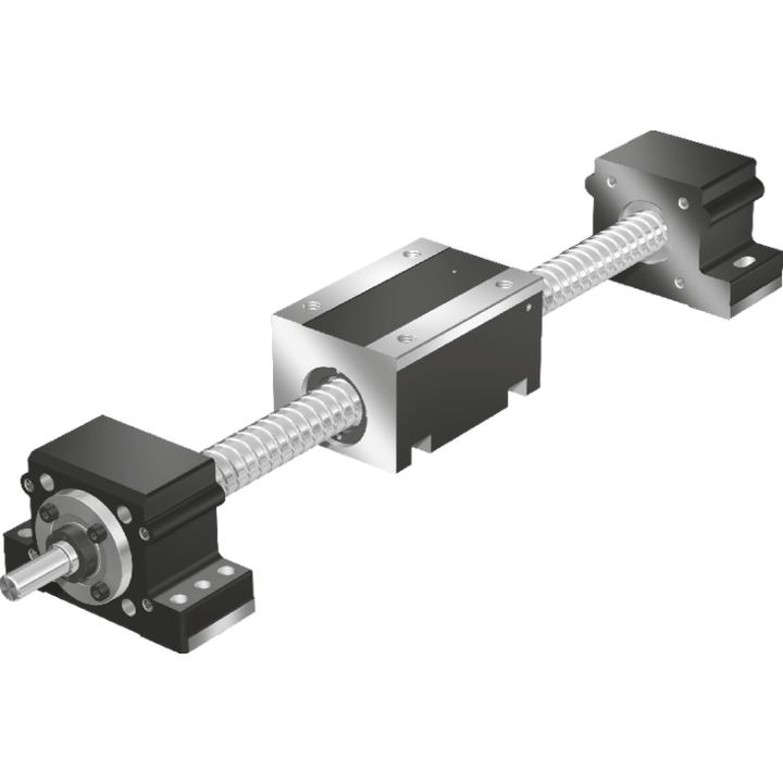 Driven by precision ball screw assembly in rolled design in accordance with DIN 69051: Screw available in tolerance grade T5 or T7, different nut versions to select from depending on the size and lead, three different preloads to select from (C1, C2, and C3)